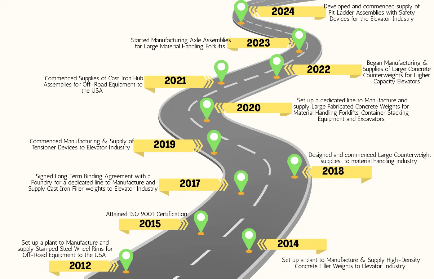 Began Manufacturing & Supplies of Large Concrete Counterweights for Higher Capacity Elevators.